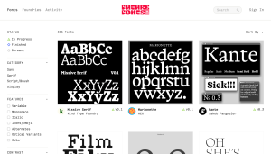 Un marketplace de tipografías en progreso. Los diseñadores publican sus fuentes mientras las desarrollan, a un precio menor, y quien compra recibe todas las actualizaciones sin coste adicional. El resultado es un catálogo de tipografías experimentales y de autor que no encontrarás en ningún otro sitio. Si te interesa salir del circuito habitual, aquí hay mucho que explorar.